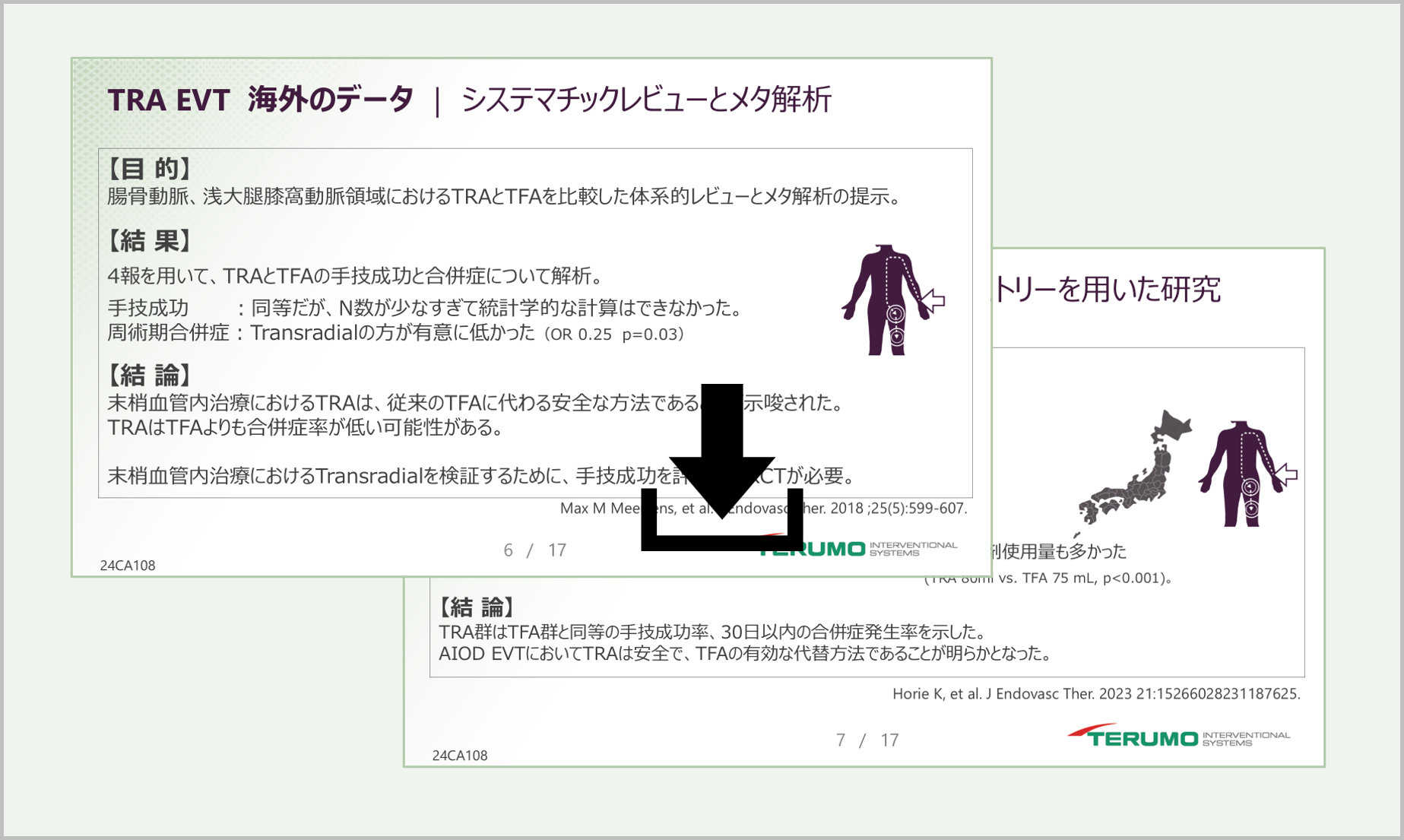 腸骨動脈、浅大腿膝窩動脈領域におけるTRAとTFAを比較した体系的レビューとメタ解析の提示。